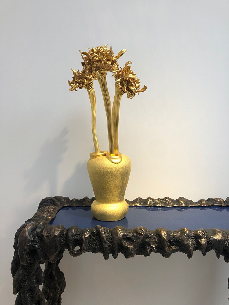 She studies crystals, jellyfish, flowers and micro-organisms with a particular fascination with form, structure and geometry. Her work arises in species and families as is fitting from the natural world which inspires them. In 2009 she began working on the Eternal Spring collection, an installation with objects made of milky white opal glass depicting the awakening nature in spring. The installation includes snow-white branches that protrude from walls, tables and floor objects, from knots of willows or from corals. Some of these objects, including those created with the cast of an ancient pollard willow, are monumental in scale.